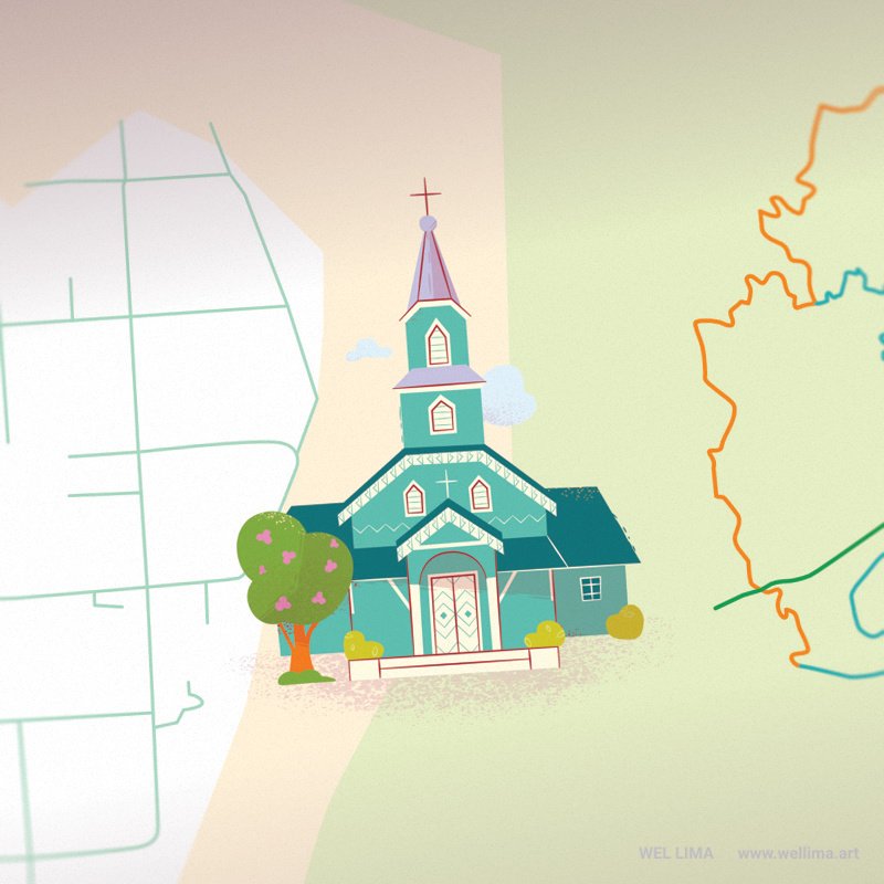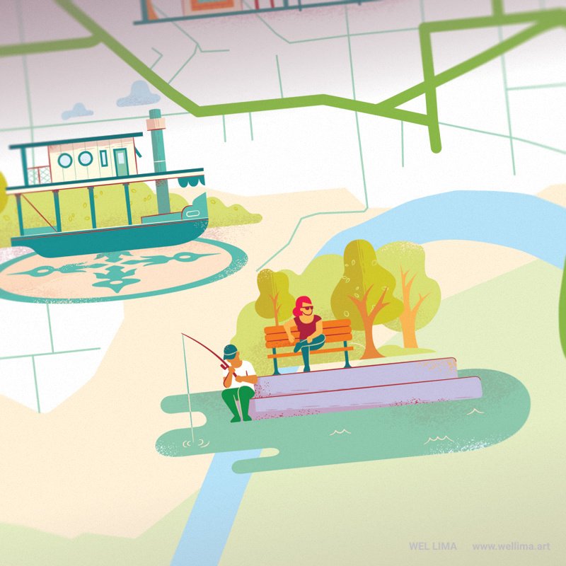 Ilustrações sobre locais de turismo para mapas, eventos e produtos promocionais.